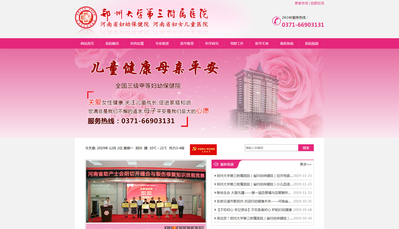 鄭州大學第三附屬醫院暨河南省婦幼保健院是1986年經河南省人民政府命名的集醫療、保健、教學、科研、康復、培訓和指導七位一體的三級甲等婦幼保健院,也是河南省婦女兒童醫院、鄭州大學附屬婦產兒童醫院、河南省兒童腦癱康復醫院,承擔著全省婦女兒童的醫療、保健以及婦產兒童專業技術人員的業務培訓和技術指導任務,也是聯合國兒童基金會指定的*大陸七大培訓基地之一。